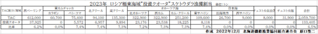 [2023年 ロシア極東海域“投資クオータ”スケトウダラ漁獲割当]