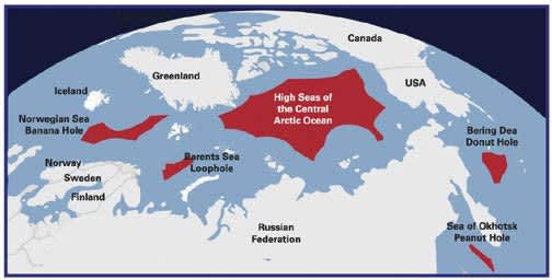 ロシア、米国など北極海沿岸国と日本、EUを含む計10の国と機関は、2018年10月、地球温暖化で氷が解けて海表面が広がる北極海中央部の公海での商業漁業を禁止する協定に署名、2021年、これが発効している。