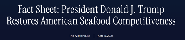 2025年4月17日、米国大統領ドナルド・J・トランプは、自国の水産物の競争力を回復するための大統領令に署名した。