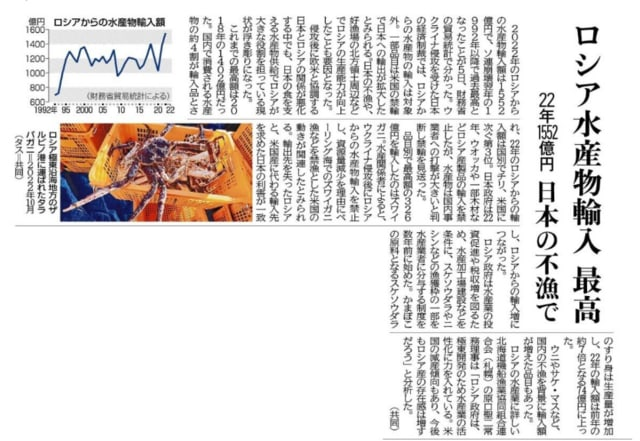 Данные японского Министерства финансов, опубликованные в пятницу, показали, что Япония в 2022 году импортировала из России морепродуктов на рекордную сумму 155,2 млрд иен. Это подтверждает сохраняющуюся зависимость Токио от Москвы в этом вопросе, несмотря на ухудшение отношений из-за Украины.